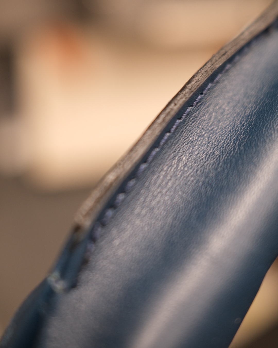 Chaque point de couture témoigne de la technique "aux pinces" réalisée au valet traditionnel - cet outil qui donne son nom à notre maison. La finition respecte les codes de la sellerie parisienne : bords francs teints à la main, coutures apparentes qui racontent l'histoire de sa confection.