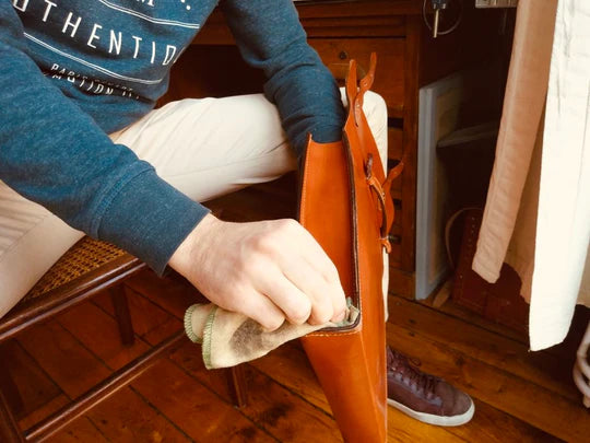 After application, let the leather rest for a few moments then polish it with a soft, clean cloth.