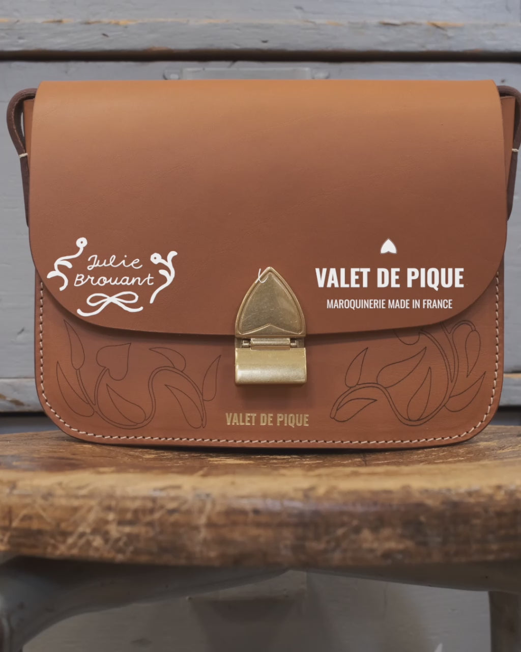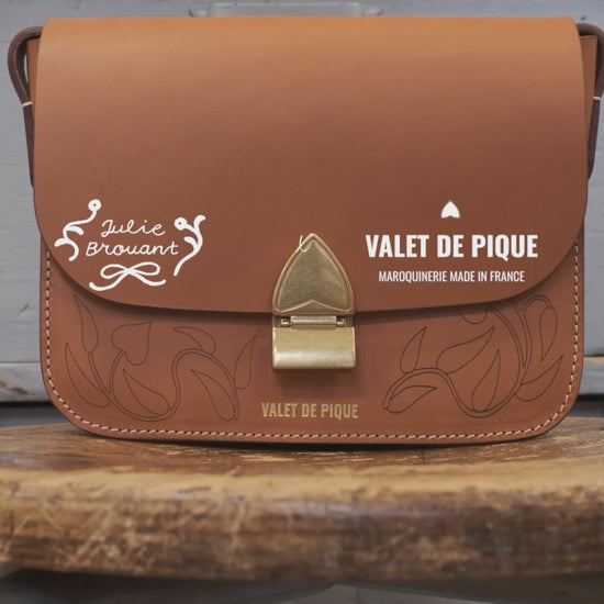 Pour Valet de Pique Julie propose un dessin gravé au laser qui transforme le sac à main Colette en toiles en exprimant toute la joie de son art.